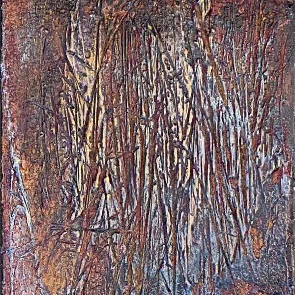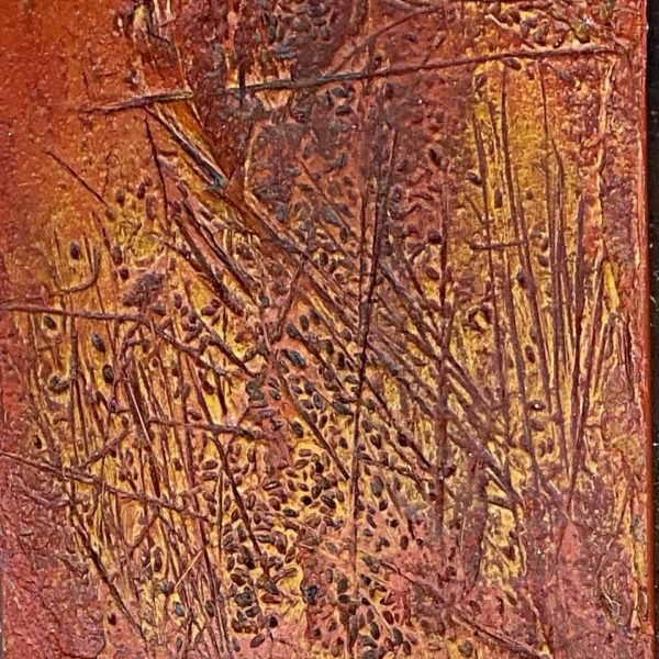 Created with stone texture, embedded Indian grass and Kansas wheat, rust, and paint.