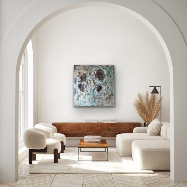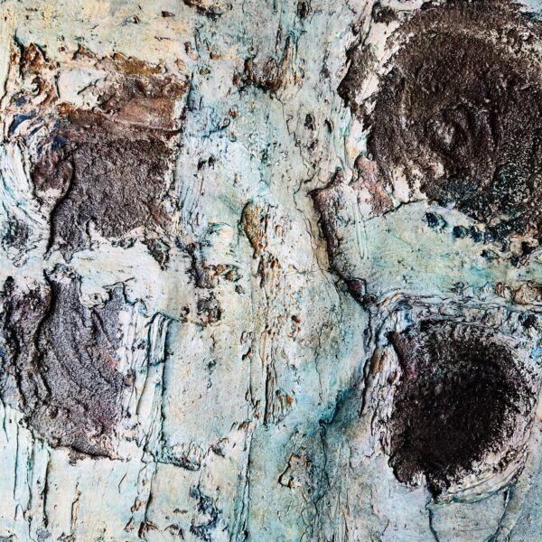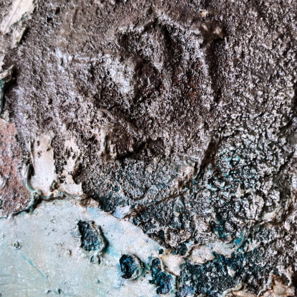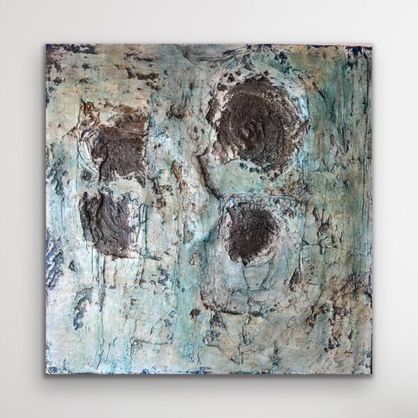 This piece was selected for the 2024 Symphony in the Flint Hills Art Auction to bring awareness to conservation of the tallgrass prairie. It has rust, prairie plant ash, country river silt, wheat kernels and very thick texture with layers of paints and inks. SOLD